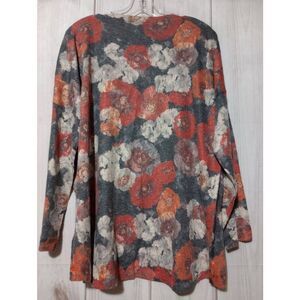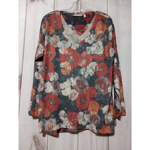 Soft Surroundings Sweater Ladies Medium Gray Red Floral Light Weight VNeck