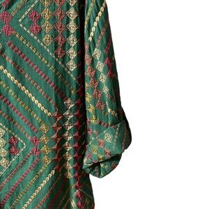 Soft Surroundings Terrare Tunic Shirt Green Embroidered Size PS