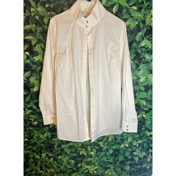Career blouse with gold buttons and high neck closure. New without tags. Size medium by Soft Surroundings.