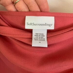 Soft Surroundings plus size dusty rose covered button crossover wrap long sleeve top with drape over right shoulder