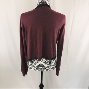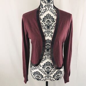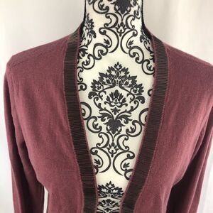 New with tags Soft Surroundings knit shrug cardigan size small. Merino wool blend with metallic accents on hemline and collar. Open front with rounded collar line. Long sleeves and dusty mauve color. Soft, lightweight and comfortable!