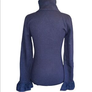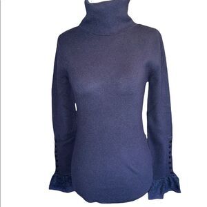 Soft Surroundings Navy Blue Turtle Neck with Button/Lace Cuffs