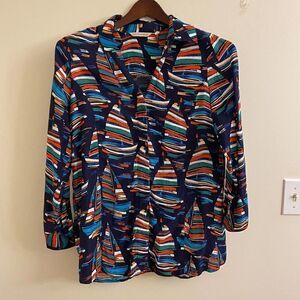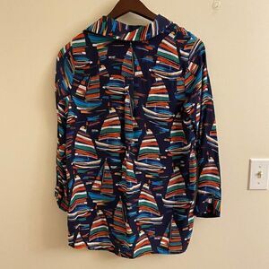 Soft Surroundings Navy Sail Away Sailboat Button Down Shirt Small