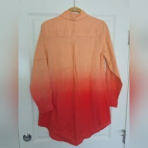 SoftSurroundings Orange and Red Ombre Button-Up Shirt Size S