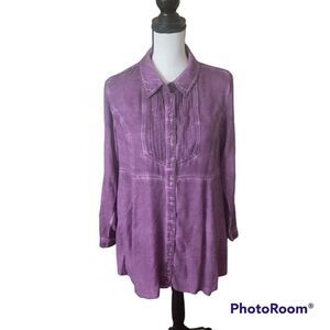 Purple pigment wash button up tunic. Super soft. 100% viscose. The brand tag and size tag has been cut out but the measurements and the style code say it's a M.
