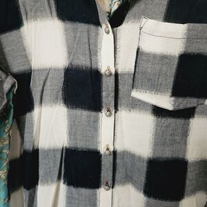 Soft Surroundings Plaid Button Down Chiffon Back Long Sleeve