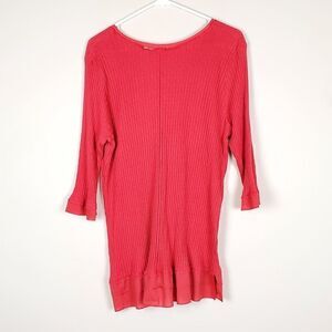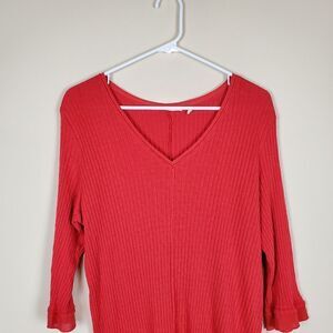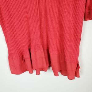 Soft Surroundings Red Knit Ribbed Vneck Half Sleeve Sweater