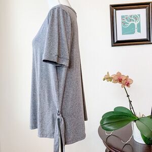 Soft Surroundings gray blouse with side slits and ties. Perfect with skinny jeans or dressy shorts this spring and summer!