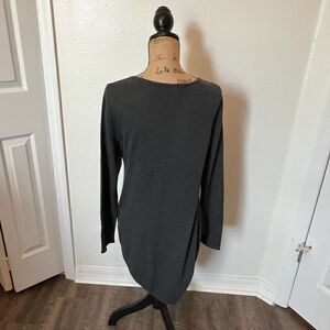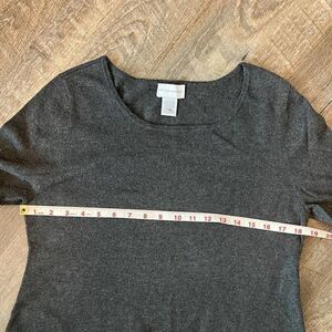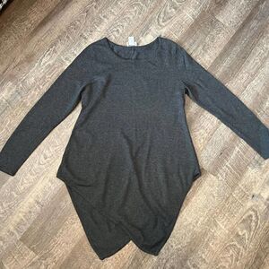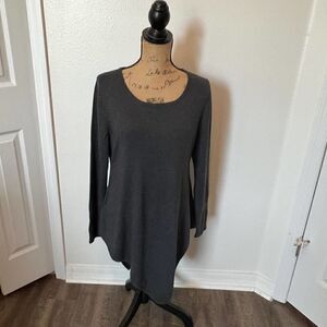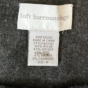 This listing is for a Soft Surroundings sweater in size medium. The sweater is charcoal grey, long sleeve, comes to a v at the front and back, and is in great condition.