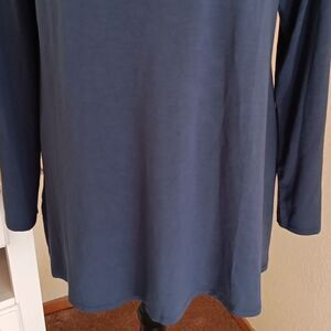NWT Tahira tunic, a soft and comfy blue tunic. Ruched turtleneck. Long sleeves. Size XL measures 44 at chest, 60 at bottom vented hem . 32 long from shoulder to hem. This puts the SOFT in Soft Surroundings.