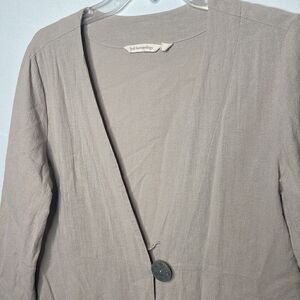 Soft Surroundings Tan/Khaki Benedetta Gauze Topper Cardigan. Size Medium. One button front closure. Lightweight breathable material. Excellent condition.