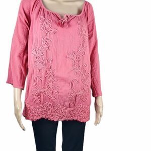 Soft Surroundings Boho Winding Vine Pinkish Brown Embroidery Tunic Top. No flaws, fully lined