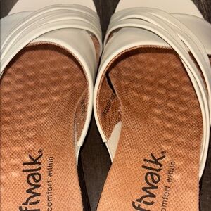 Elegant white straps with a supportive footbed. Perfect for everyday comfort. Comes with box but does seem to have some minor try on wear.