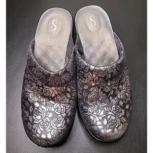 SoftWalk Grey’s Anatomy Floral Rose Print Nursing Clogs Gray Black Sz 8 GUC