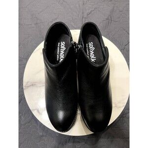 SoftWalk Rocklin Genuine Leather Zip Up Side Black Ankle Booties. Take on the day in the versatile Rocklin bootie from SoftWalk(r). Premium leather upper with a round toe. Side zip closure with tassel for easy on and off. Features brushed microfiber lining with foam backing for all-day comfort.
