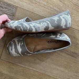 SoftWalk Warm Gray Camo Sicily Flat | Size 6