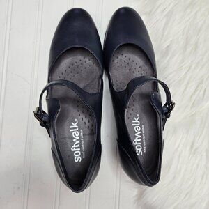 SoftWalk Women’s Irish II Dress Pump Size 9.5N Dark Blue Leather Mary Jane Heels