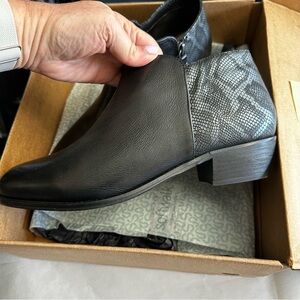 SoftWalk Women’s Rockin Black Snake Print Leather Booties Comfort Side Zip Neutral Western Festival Minimalist