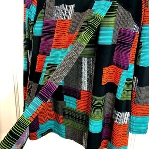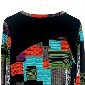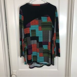 SoftWorks black multi colored asymmetrical 3/4 sleeved knit tunic size M