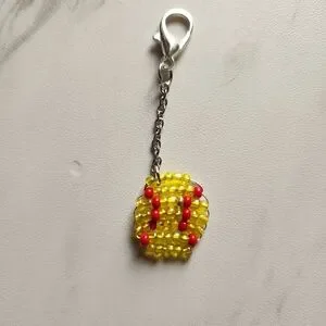Add a pop of color to your accessories with this vibrant yellow beaded keychain. Perfect for adding a unique touch to your bag or keys.