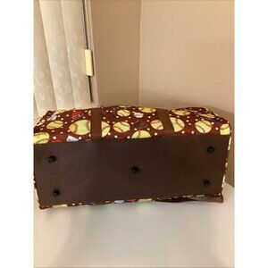 Softball Printed Design Oversized Duffel Gym Bag featuring balls, bats,batting plate, helmet and mitts. A large spacious compartment to fit workout gear, sneakers, and other essentials needed for softball games or training. Has front pocket and removable adjustable cross body strap.