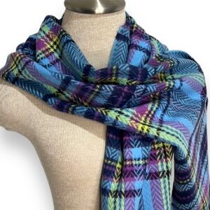 Softer Than Cashmere? D&Y Plaid Scarf Blue Black Pink and Yellow with Tassels