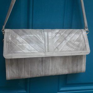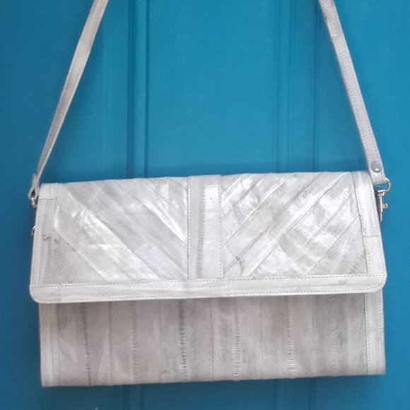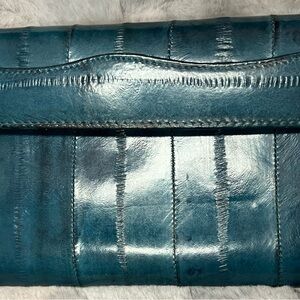 Softest Leather Vintage Handbag Purse Clutch with Strap Genuine Eelskin Bag