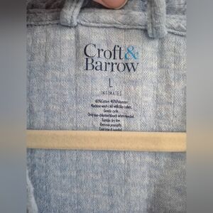Has an inside and outside tie as well as pockets. Soft enough to never take off.