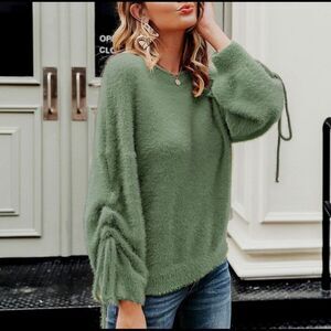 Softest Mohair Sweater With Tie-Ruched Arms