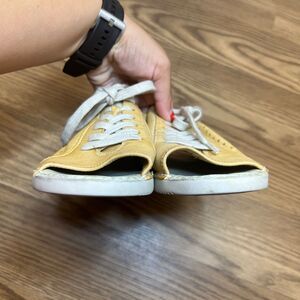 Softinos By Fly London Shoes Womens Sz 38 Yellow Lace Up Peep Toe Shoes Comfort
