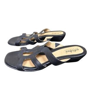 Softshoe by Medicus Size 8 Black Leather Slip On Wedge Sandal Casual
