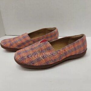 Pretty multi-color plaid shoes with metallic thread for a sparkly look.