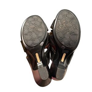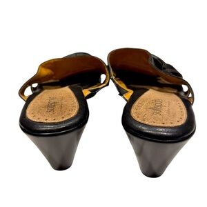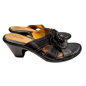 Softspots Flower Black Leather Slip On Mule Heel Wedge Sandal Size 8