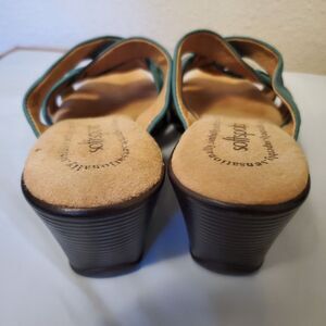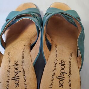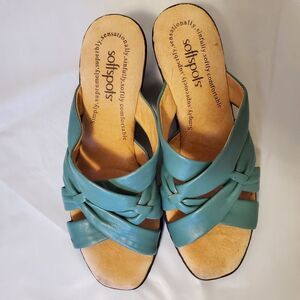 Softspots Green Criss-Cross Open Toe Leather Sandals Size 7M Soft Straps