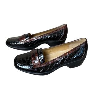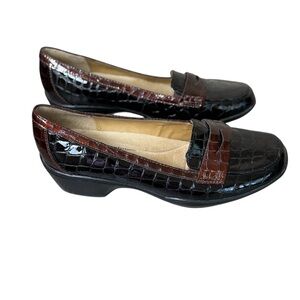 Softspots Womens Penny Loafers 8.5W Wide Black Brown Patent Leather Crocodile