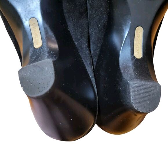 Softspots clogs gently used black embroidered leather/suede, 3 in heel, size 9.5