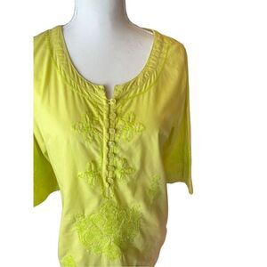 Soft surrounding green floral blouse This is in execellent condition with no , rips ,stains or tears. Measurements are in the photos measurements are approximate and are taken laying down