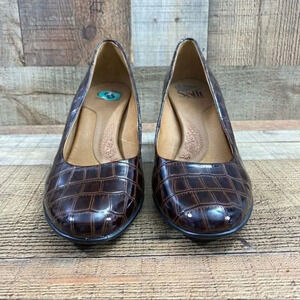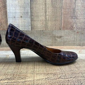 Softt Brown Leather Animal Print Pumps Womens 8M Slip On Heels. Round toe. Easy slip on. 2 inch Heel.