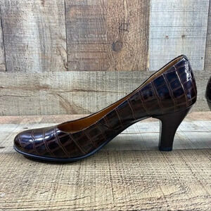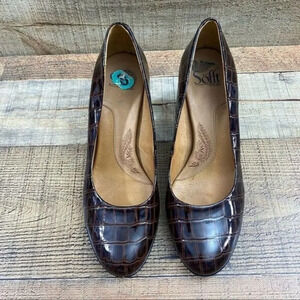 Softt Brown Leather Animal Print Pumps Womens 8M Slip On Heels Leather