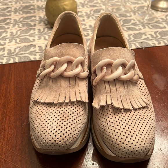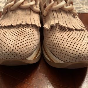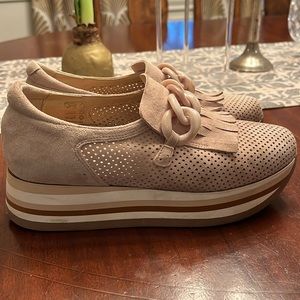 Creme color, super comfortable. Very versatile, can be dressed up or down! With a little lift platform sole