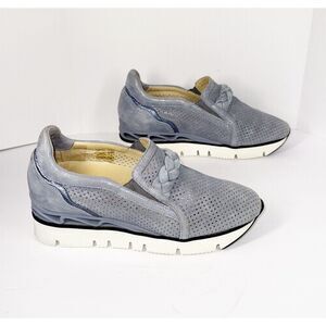 Softwaves Suede Platform Sneaker Loafer Dusty Blue Metallic Perforated 37/6.5