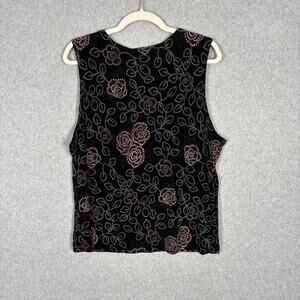 Softwear Mark Singer Top Roses Slinky Knit Career Capsule Church Maximalist Loud Tank Sleeveless Stretch Acetate USA Retro Corp Career Work Office Business Church Classic Casual Cotton Polyester Travel Floral Flowers Bloom Cottage Granny Grandma VTG Vintage