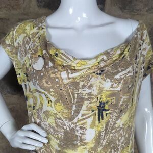 Soft works Petites Top Woman's Size Large Patterned Tie Side Neutral Cowl Neck