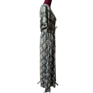 Sohalia Maxi Dress One Size Green Floral Sun Cover up Viscose