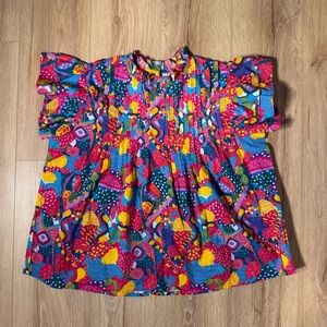 Sohana Colorful Multicolor Ruffle Sleeve Flutter Women's Top Size Large