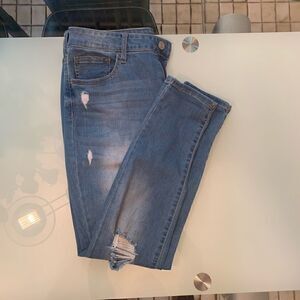 So high rise ankle begging 11 flat 32/36.5 very stretchy destroyed. Rise 10 inches,