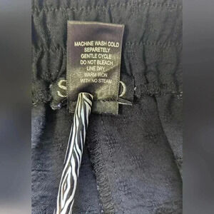 Elegant black straight leg pants. Comfortable fit with drawstring waist. Perfect for any occasion. Added black small pockets to inside of pants.