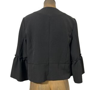 Soho Apparel Cropped Blazer with Ruffle Flounce Bell Sleeves Medium Black