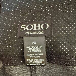 Soho Apparel Ltd Black and Silver Pull On Pants NWT Sz 2X Ret $55