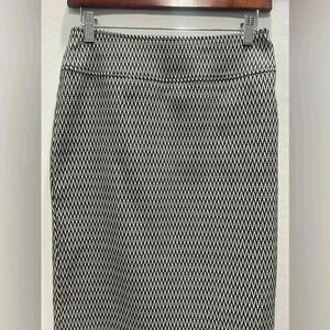 Add a touch of sophistication to your wardrobe with this stunning black and white print pencil skirt from Soho Apparel Ltd. This pre-loved skirt is in excellent condition and is perfect for a variety of occasions, from a day at the office to a night out on the town. The size small fit is flattering and versatile, making it a must-have piece for any fashion-forward individual. The classic black and white print is timeless and easy to style, making it a versatile addition to your closet. Pair it with a blouse and heels for a chic office look, or dress it down with a graphic tee and sneakers for a more casual vibe. Don't miss out on this stylish and affordable piece from Soho Apparel Ltd!